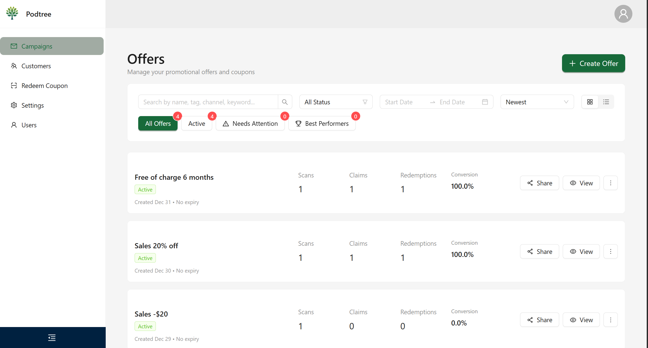 Generate a trackable QR code or link for each campaign in seconds — no setup, no complicated tagging.